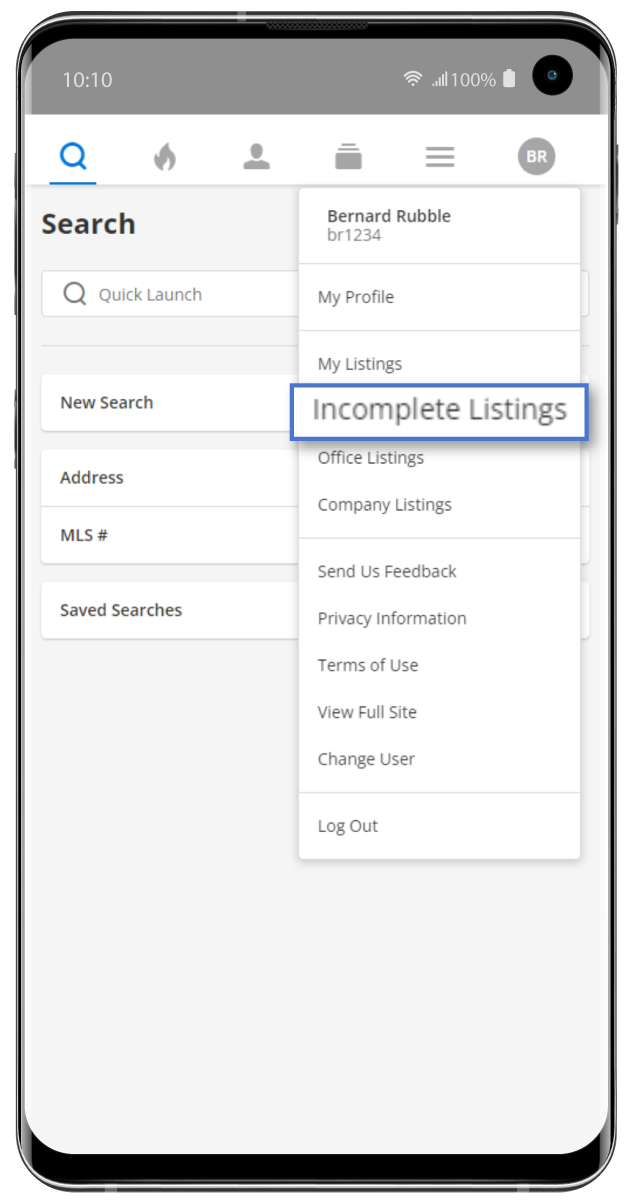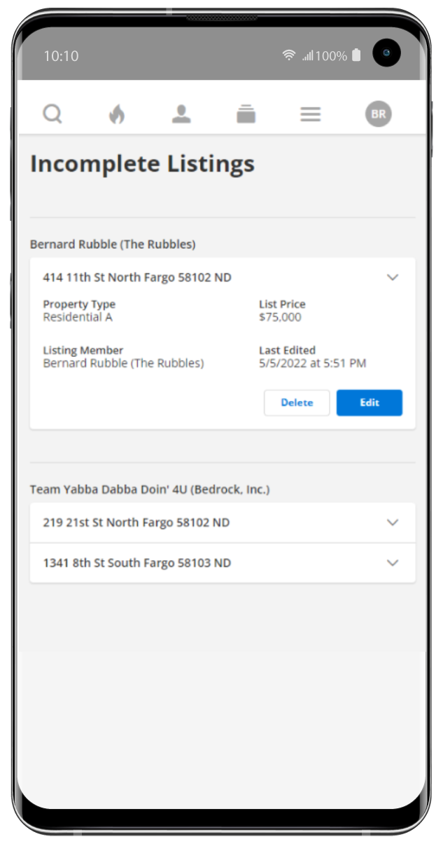 There will now be a menu item under the profile menu for Incomplete Listings. Here you will be able to view any incomplete listings you have access to on Flexmls desktop. You will then be able to edit or delete an incomplete listing from your mobile device. Editing will allow you to make changes to photos, documents, videos, and virtual tours.