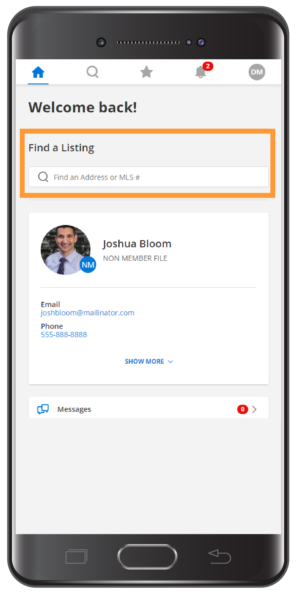 For members who have purchased IDX from FBS, contacts will be able to search for an address or MLS number from their Flexmls mobile portal. The new search bar will be available on the mobile portal home page.