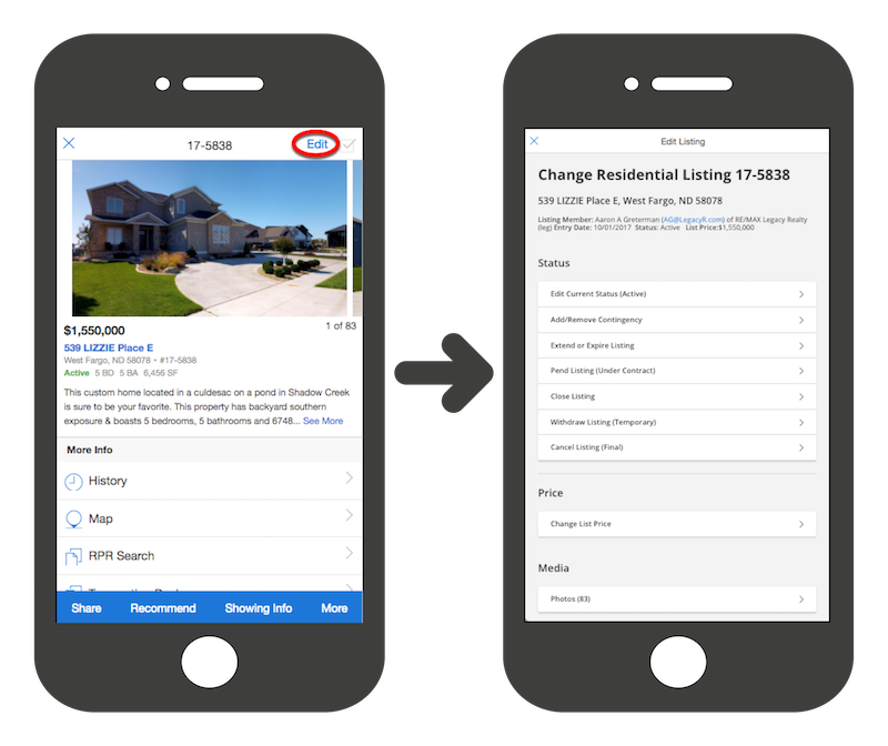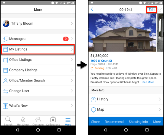 - Select a listing, and tap the Edit link at the top of the screen.