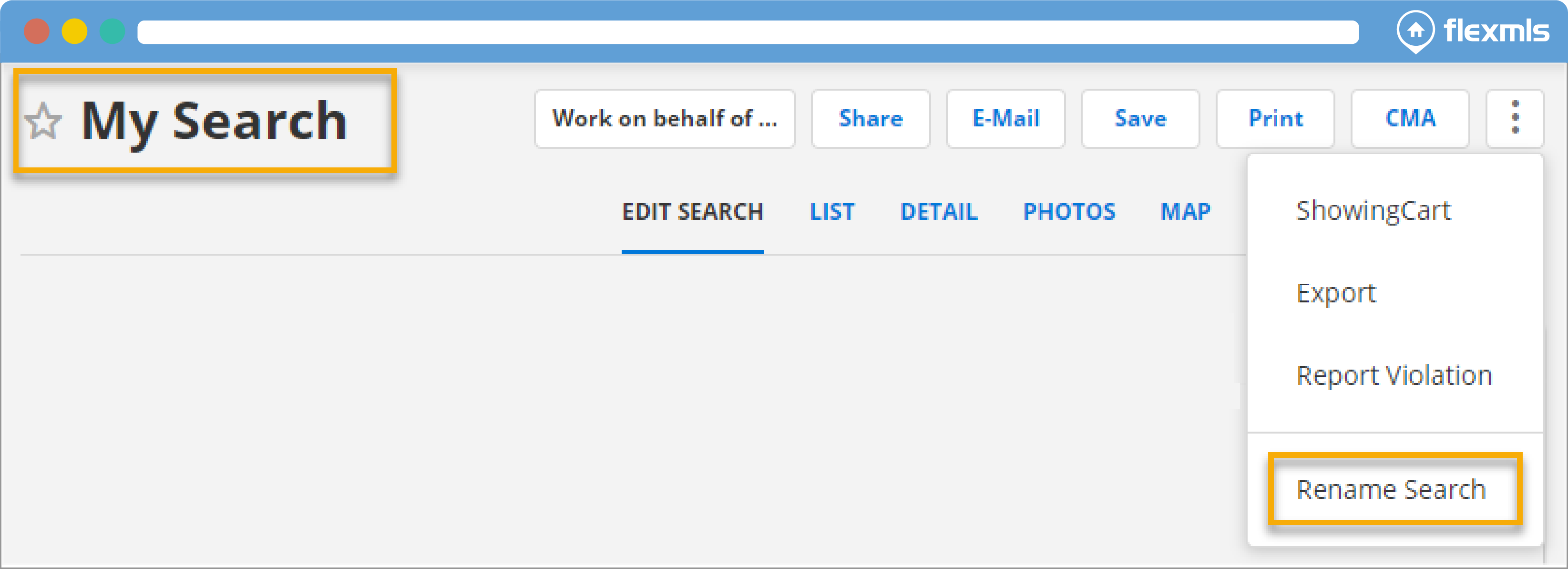 After this update, immediately after saving a new search, the search name will be displayed on the page, making it clear that you are working with the criteria and results of the saved search. YouÕll be able to click the star icon next to the search name to mark the search as a favorite, and the Rename Search function will be available under the More icon (three dots).