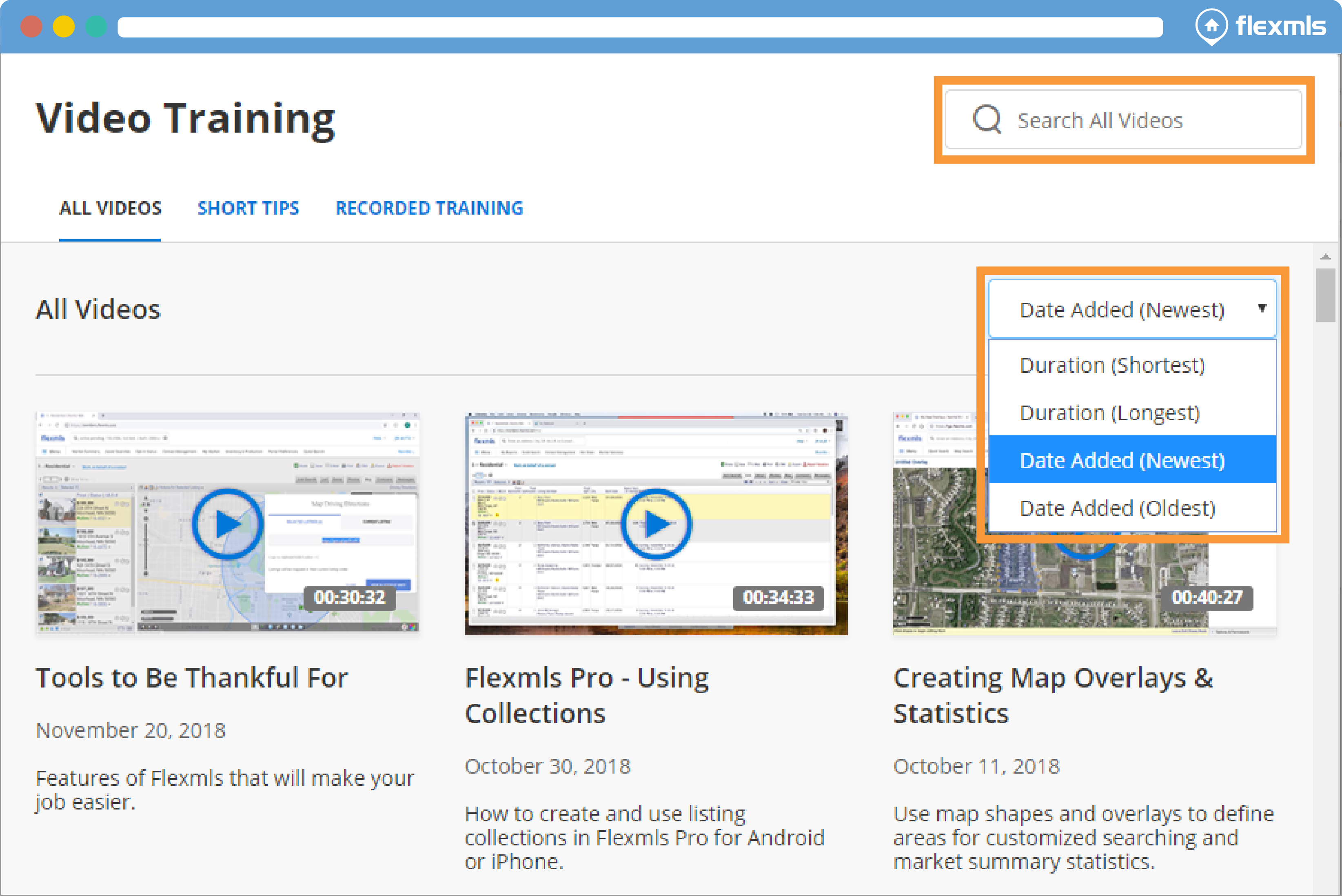Sort by video duration to easily see which videos are quick tips and which contain longer, more in-depth training, or sort by date to access the newest training available. WeÕve also added a search function to help you find the right video.