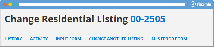 Links for History, Activity, Change Another Listing, and the MLS Error Form (as allowed by your MLS) will remain at the top of the page. Depending on the settings of your MLS, an Input Form link will be added, giving you access to a printable input form for the listing.