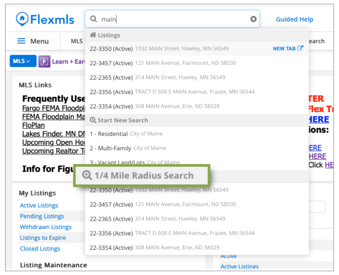 Want easier access to nearby listings for a specific address? You can now quickly perform a _ mile radius search in Quick Launch on Flexmls desktop.