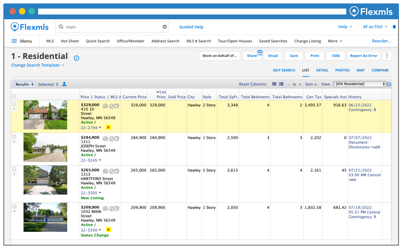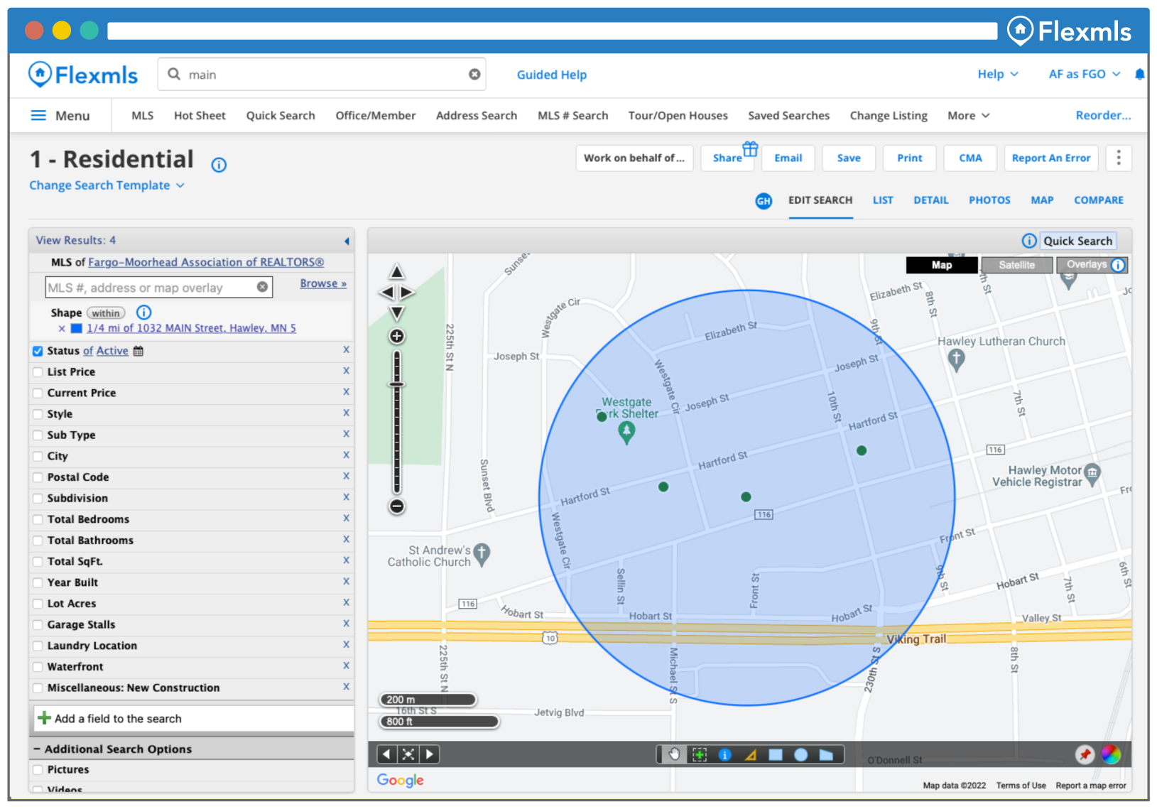 Your radius search is automatically drawn with your MLS’s default statuses selected. You can then continue to filter your search results.
