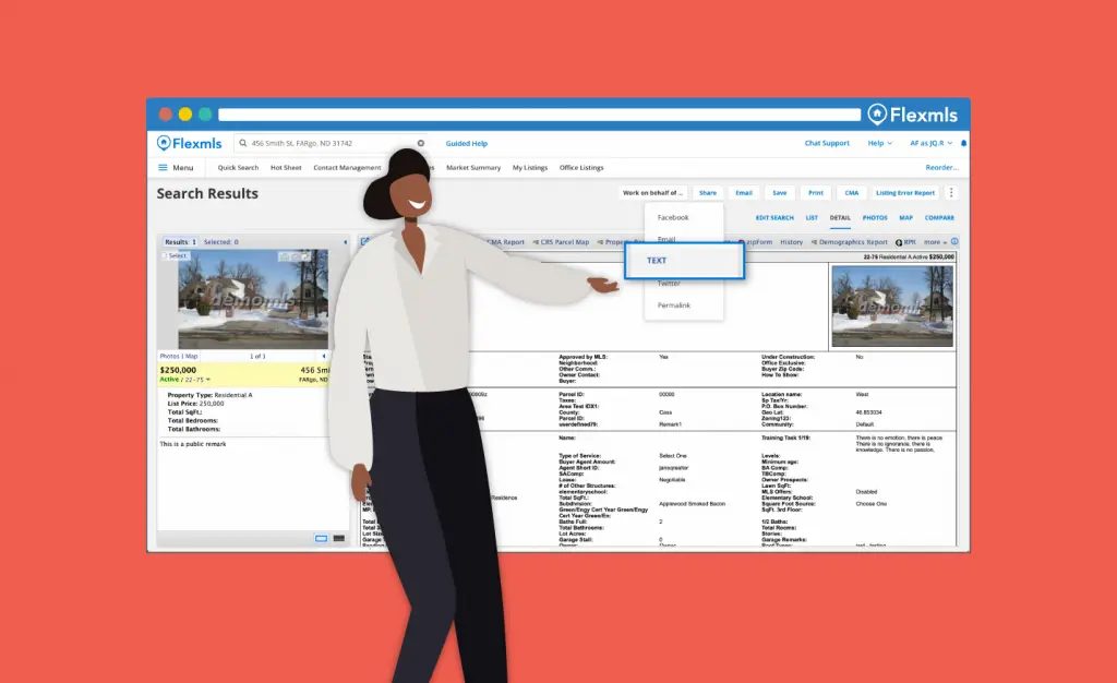Share listings via text message on desktop, giving you another quick way to connect with clients and share properties.