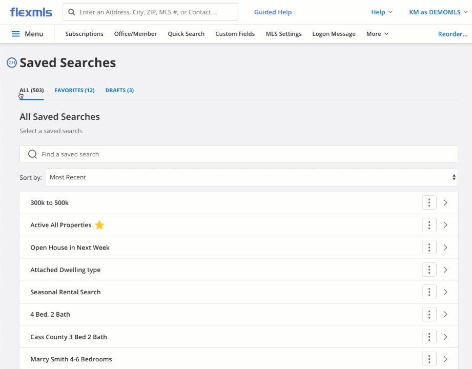 To help you find the saved search you need, we’ve added a Search bar at the top of the page. We’ve also added links to easily access favorite and draft searches. You’ll be able to sort the list of saved searches by most recent, least recent, or search name.