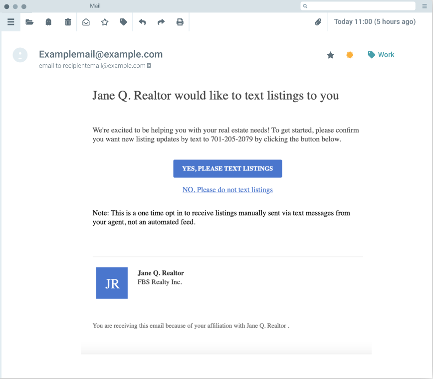 Once you have sent your client the opt-in request, they will receive an email asking them to confirm that they would like to receive listings manually sent via text message. You will then receive an email notifying you of their opt-in status.