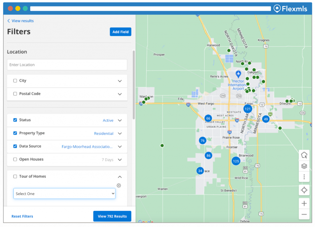 Filters for searching are now in a left side panel instead of a pop-up, with the map displaying on the right on the Flexmls Mobile website (m.flexmls.com), instead of listings. On the Flexmls for Real Estate Pros Android App now the map will display when beginning a new search, instead of listings.